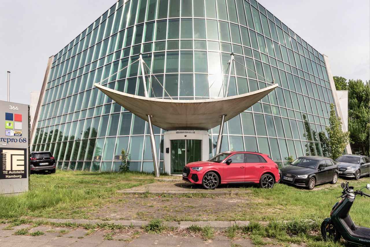 Anfang der 1990er Jahre realisierte das Hamburger Architekturbüro Behrend Schaaf Guzielski eine futuristisch anmutende Glaskonstruktion für die Repro 68 Medienfabrik GmbH in Alsterdorf. Die Zentrale an der Alsterkrugchaussee 366 im Bezirk Hamburg-Nord wurde 1991 fertiggestellt und besteht aus einem Bürokomplex mit sichelförmigem Grundriss sowie einem anschließenden dreieckigen Produktionsgebäude. Besonders augenfällig ist das freistehende Vordach und die mit 76,6 Grad geneigte Glasfassade, deren Ausführung eine konstruktive Meisterleistung darstellt. Ziel der Architektur war es, die interne Kommunikation zwischen den einzelnen Arbeitsbereichen durch höhenversetzte Etagen zu erleichtern und auch nach außen transparent zu gestalten. Die sogenannten "Split-Levels" münden in einer offenen Halle, die die beiden Teilkörper miteinander verbindet.