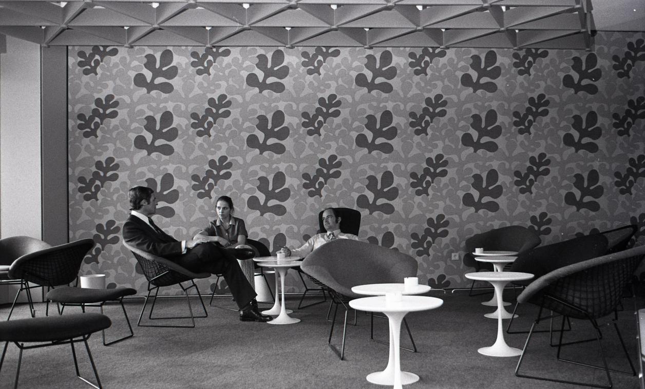 Treten diese Konzerne als Bauherr auf, geht es mitunter nicht nur um die Funktionalität eines Gebäudes, sondern zugleich um eine Visitenkarte, die das Unternehmen nach außen repräsentiert. Bei keinem anderen Bauwerk in der City Nord trat diese Absicht so offensichtlich in Erscheinung wie beim BP-Haus, dessen Grundriss – mit seinen fünf um ein zentrales Sechseck angeordneten Sechsecken – die Assoziation zur chemischen Struktur des Benzolrings weckte und so die Nutzung durch den Mineralölkonzern versinnbildlichte. Besonders gut zu erkennen war das Signet aus der Vogelperspektive, womit sich die Nähe zum Hamburger Flughafen – neben der guten Anbindung – als weiterer Vorteil erwies. Die Figur des Sechsecks zog sich wie ein roter Faden bis in die Details innen und um das Bauwerk herum – von den Tabletts in der Kantine bis zu den Pflanztrögen im Außenbereich. Und so abweisend das Gebäude die Angestellten und Besucher mit seiner grauen Fassade aus Waschbeton von außen auch begrüßte, so herzlich empfing es sie im Inneren mit warmen Tönen.
